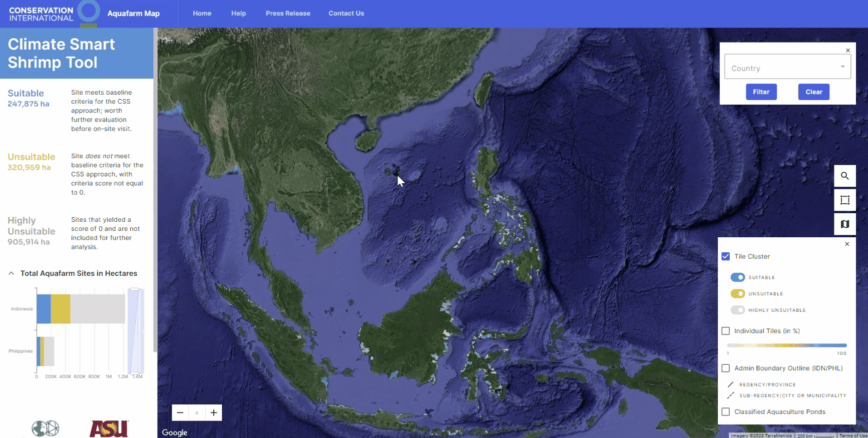 Interactive web map of aquaculture sites across Indonesia and the Philippines for CI’s Climate Smart Shrimp Program