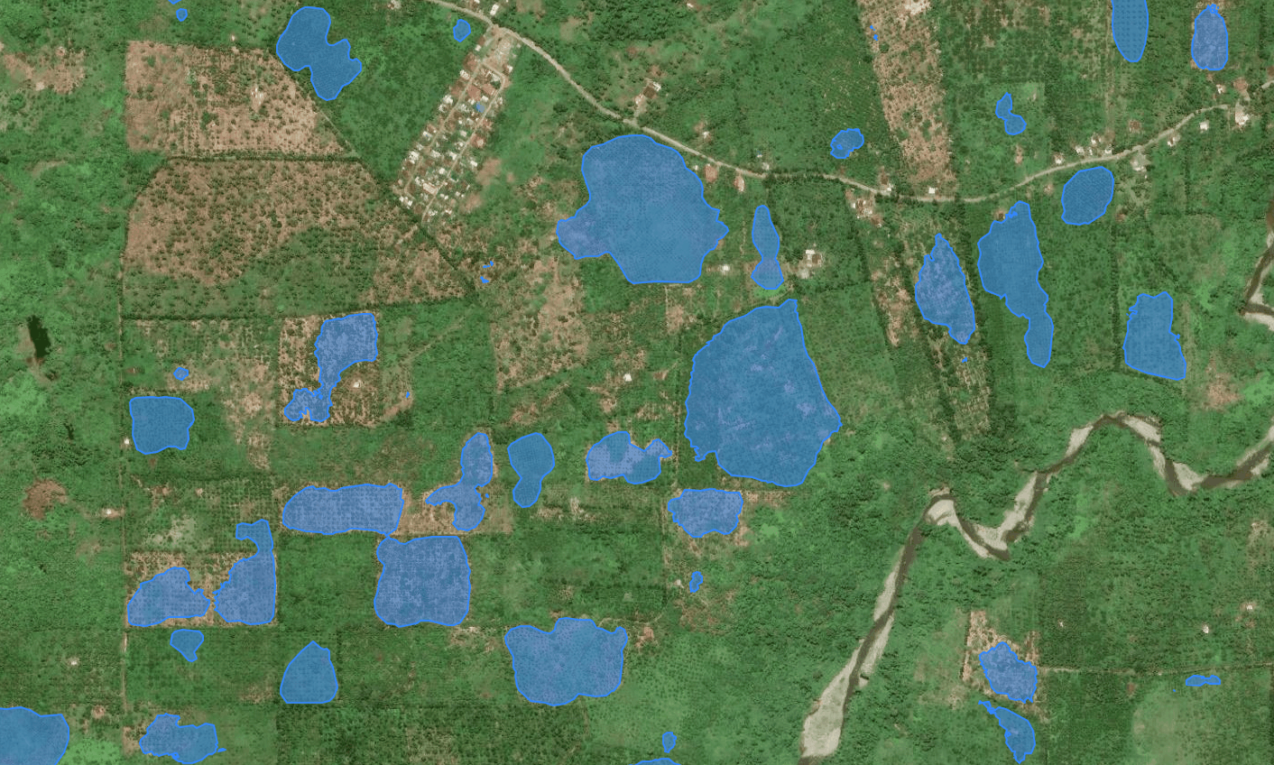 Zoomed in view of the probable calamansi farms mapped in Oriental Mindoro